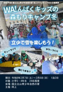 【募集中】WA!んぱくキッズの森もりキャンプ冬(小学校3・4年生対象)