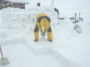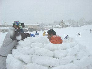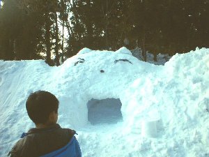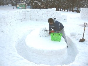 - 完成した後、イグルー内の床面を掘り下げ、雪を外に出すと広くなり、居住性がよくなります。
