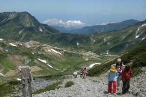 - 気象条件に応じた適切な服装をする。真夏でも3000m級の稜線では朝夕10度を下回り、さらに強風が吹いて体感温度は冬並となる場合もある。