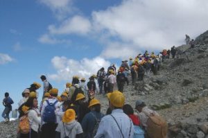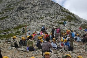 - 第1雪渓の歩道の下は、がけ場になっているので特に注意させる。