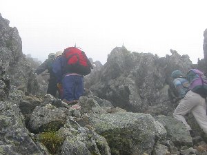 - 足元ばかり見ていないで、適宜、前後に注目させる。 危険な岩場では、フリーのリーダーが立って安全に通過させる。