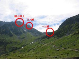 - 三ノ越以外での休憩や休息は危険箇所もあり、特別な場合を除いて避けたほうがよい。 なお、下山時の三ノ越での休憩は不要である。