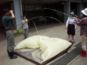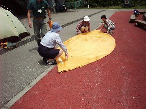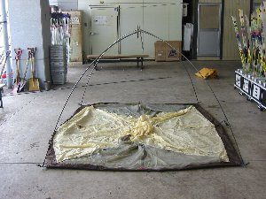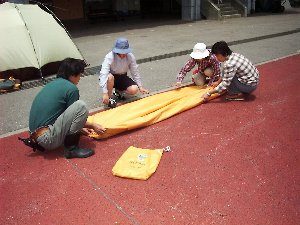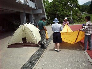 - 雨の中でテントをはるとよごれてしまいます。かたづけの時間を多くとってください。雨にあった時はテントを乾かす時間が必要です。