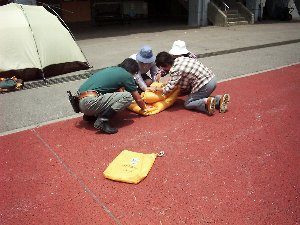 - テントの設営、撤収方法は事前訪問指導において事前に学校で体験することができます。