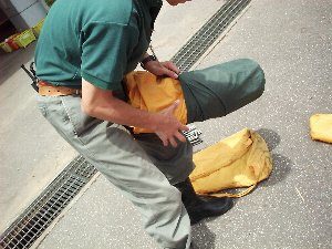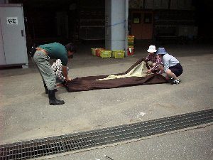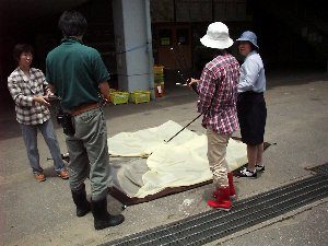 - 雨で泥がついた場合、洗ったりぞうきんでふいたりしてきれいにし、たたまないでください。また、所員と良く相談して撤収してください。