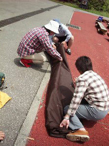 - 使う前、使った後は、らいちょう広場でブルーシートを使って乾かしてください。