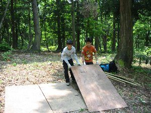 (1)コンパネ3枚を選んだ場所に並べます。