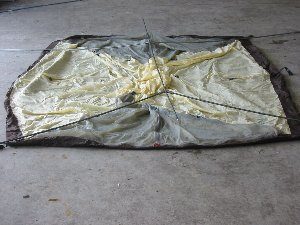 9.本体をグランドシートが外側になるようにたたんでいきます
