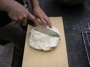 - 生地を取り出し、こぶしで10回ぐらい押さえガス抜きをする。