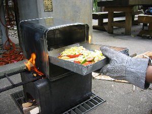 予熱した缶オーブンにトレイを入れふたをする。中火で10~20分 *強火にすると焦げやすい。