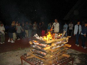 司会「さあ、燃え上がった火を囲んで、楽しいひとときを過ごしましょう。」
