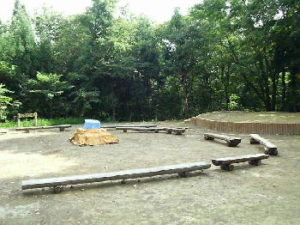 - きつつき広場・・・・・・・・・ 第1炊飯棟からのびるホースまたはバケツで消火、炊飯棟横の灰捨て場へ