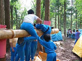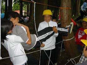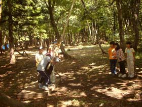 この活動プログラムは、森の中でグループで協力して、課題クリアーゲーム、信頼構築ゲーム、課題解決ゲームにチャレンジする活動です。1.5時間~3時間の設定時間の中でいくつかの野外ゲームから内容を選択して実施します。