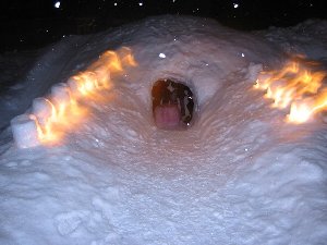 雪玉で作るシャンデリア