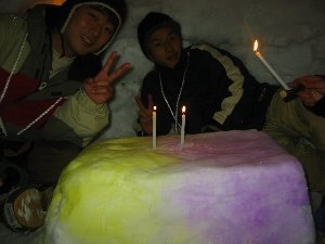 かまくらの中のテーブルも彩色