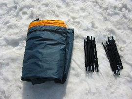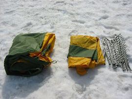 1. テント袋から本体、ポール、冬用外張りを出す。